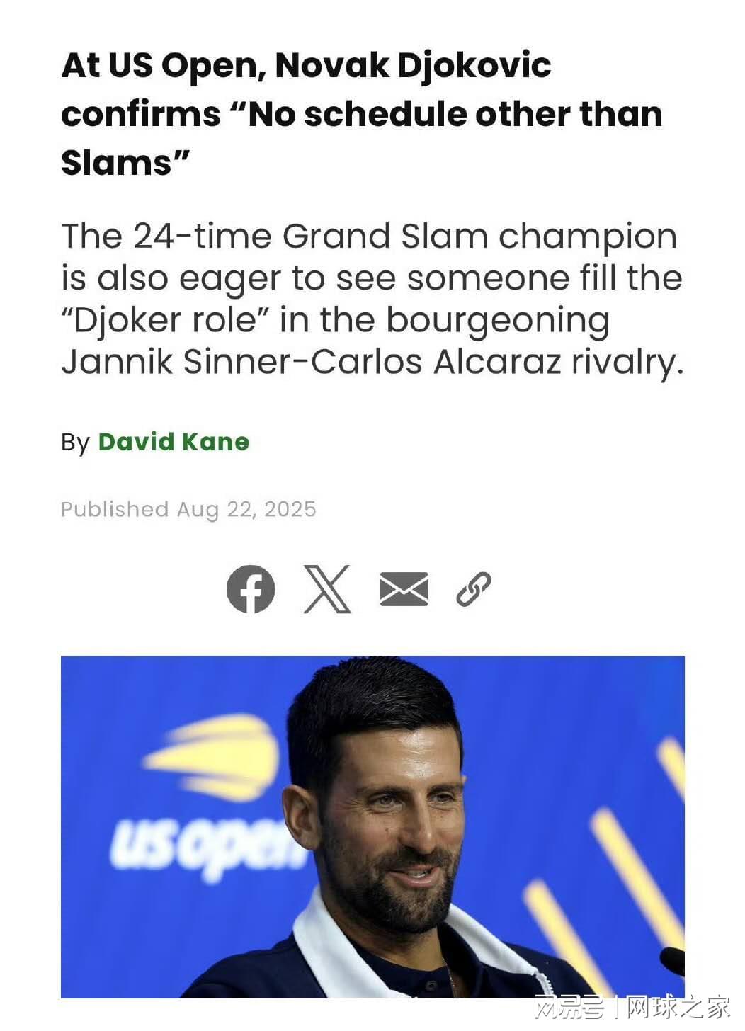 《队报》网球专栏作家埃里克·博比则写道:“德约实际上是在重新定义‘精英老龄球员’的参赛模式——只有大满贯,其余基本忽略。这很合理,但也很大胆。”